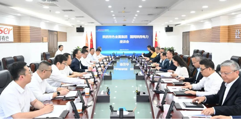 9月25日,陕西有色金属集团党委书记、董事长吴群英在集团总部与国网陕西省电力有限公司党委书记、董事长张薛鸿一行围绕购售电业务优化、新能源电力高效利用、全钒液流电池储能场景应用开发等座谈交流。国网陕西电力董事梁倩,集团公司副总经理苏旭盛参加座谈。