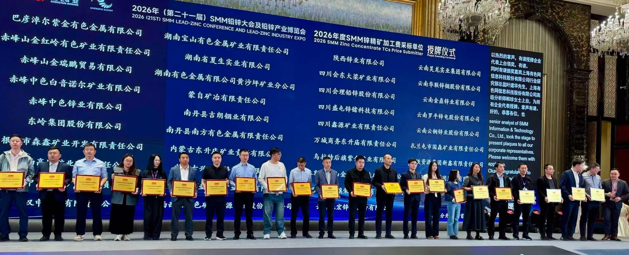 3月25日至27日,2026年(第二十一届)SMM铅锌大会暨产业博览会在四川成都召开。地矿集团权属西北资源(以下简称“西北资源”)受邀参会并获评“锌精矿加工费采标单位”,这是其自2023年以来连续第四年获此殊荣。