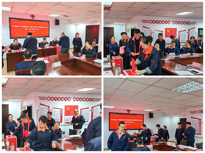 近日,中国共产党陕西天宏硅材料有限责任公司第二次代表大会在公司多媒体会议室召开。大会的主题是:以习近平新时代中国特色社会主义思想为指导,深入贯彻党的二十大精神,全面落实新时代党的建设总要求和新时代党的组织路线;在上级党委的正确领导下,回顾公司过去五年工作,剖析存在不足,研判当前形势,明确未来五年工作思路与举措,选举产生公司新一届党的委员会和纪律检查委员会。
