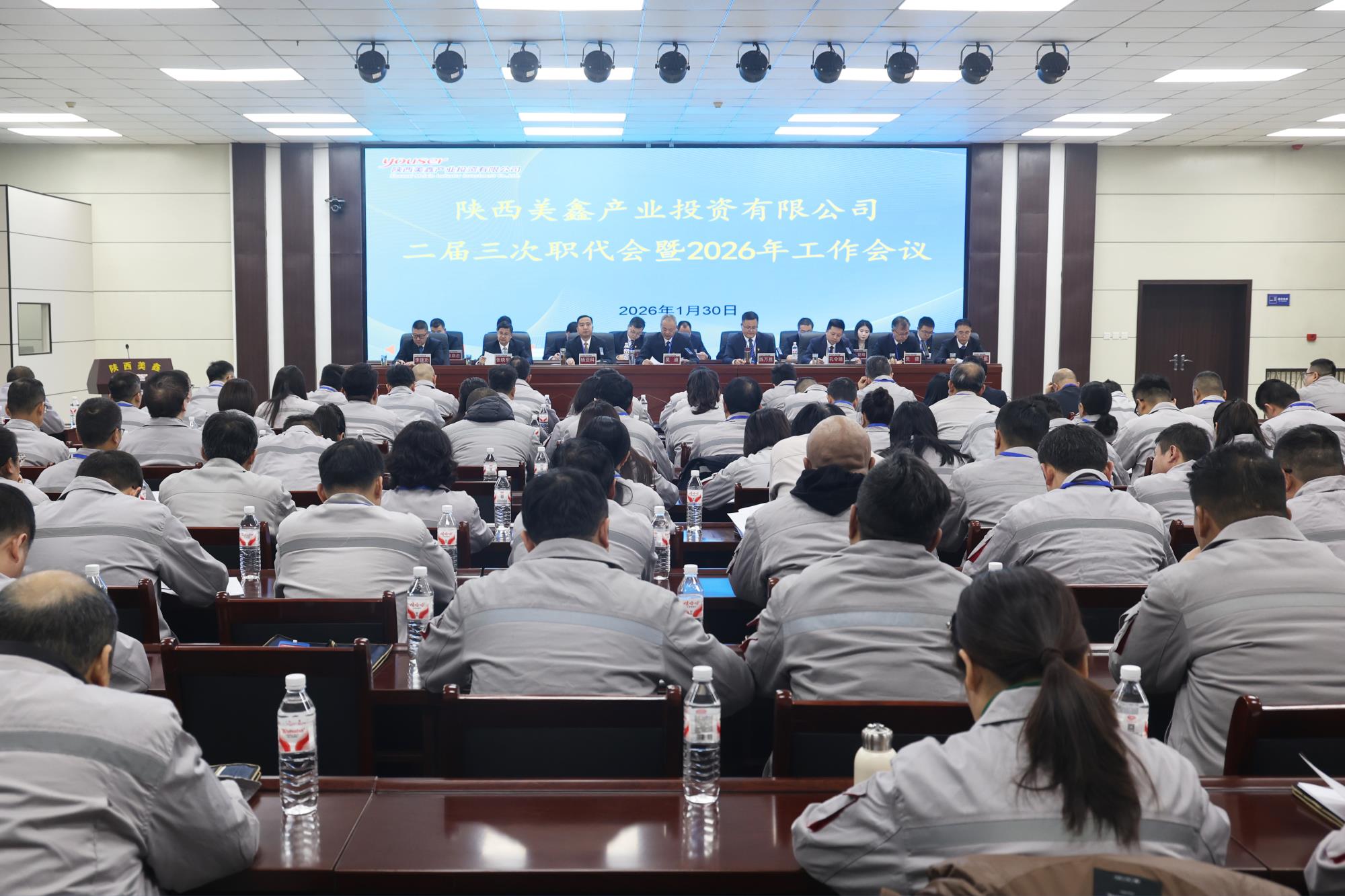 1月30日,美鑫公司二届三次职代会暨2026年工作会议在铜川召开。会议深入学习贯彻党的二十大、二十届四中全会及中央经济工作会议精神,认真落实陕西有色金属集团三届四次职代会暨2026年工作会议部署,全面总结2025年及“十四五”工作,分析研判发展形势,安排部署2026年重点任务。美鑫公司党委书记、董事长吴迪出席会议并讲话,党委副书记、董事、总经理、总工程师陈万胜作工作报告。党委副书记、董事、工会主席杨亚科主持会议。