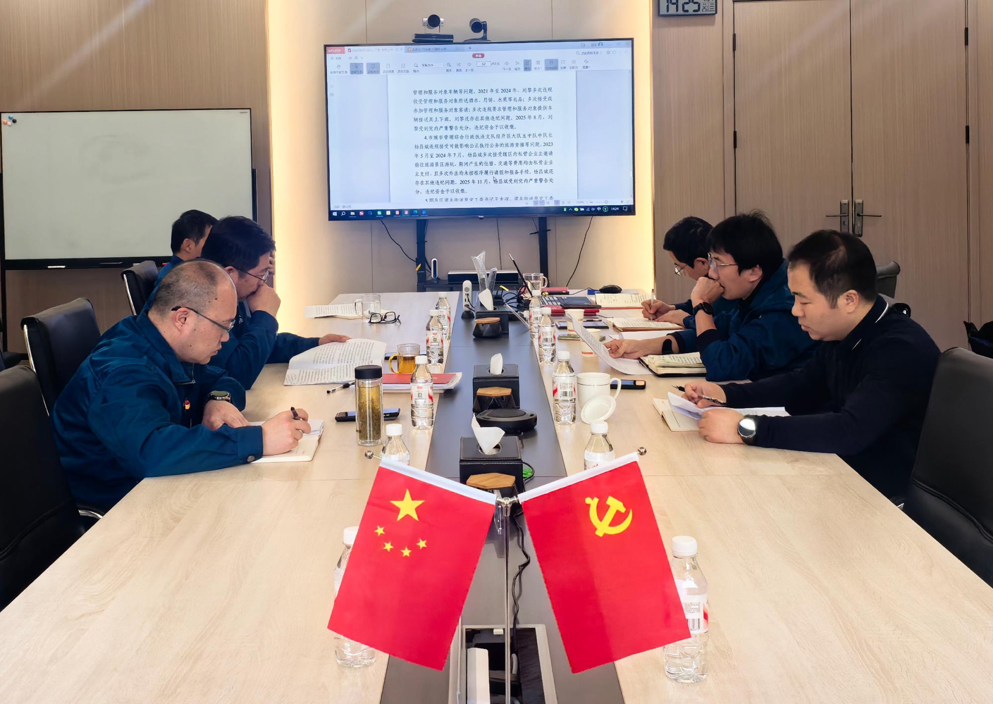 1月21日,天策科技党支部组织理论学习中心组2026年第一次学习,集中学习习近平在二十届中央纪委五次全会上发表重要讲话、陕西省省属企业违规经营投资责任追究实施办法及变动情况说明、中国共产党重大事项请示报告条例、中央纪委国家监委通报西安违反中央八项规定精神问题。公司党支部书记、董事长孙胜奇主持会议并领学,支部委员、总会计师赵雪石领学并作重点发言,公司班子成员及中心组成员参加学习。