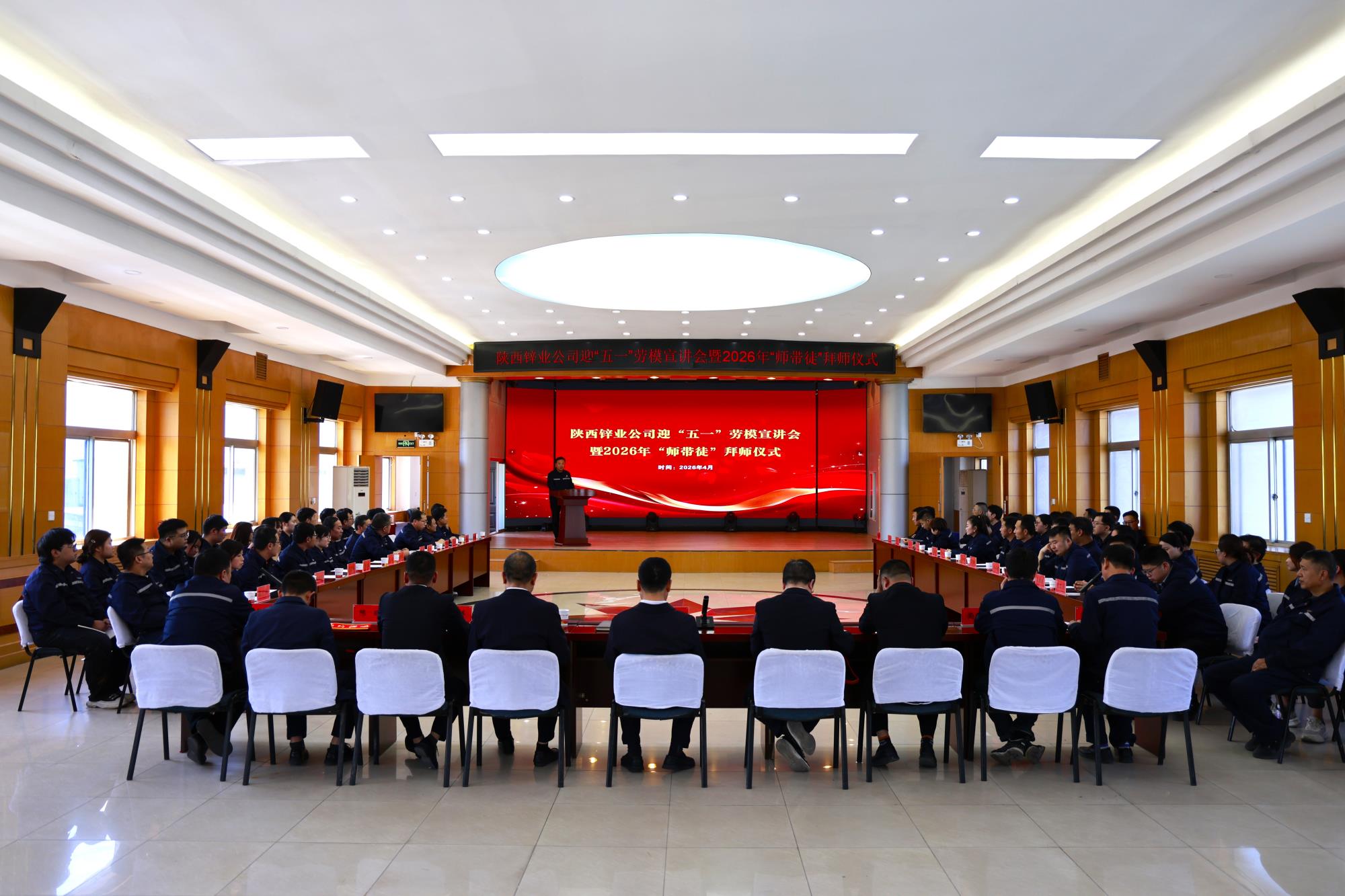在“五一”国际劳动节来临之际,为大力弘扬劳模精神、劳动精神、工匠精神,扎实推进产业工人队伍建设改革,近日,陕西锌业有限公司开展“匠心逐梦·薪火相传”迎“五一”劳模宣讲会暨2026年“师带徒”拜师仪式。活动将思想引领与人才传承深度融合,以劳模故事砥砺奋进初心,以师徒契约赓续企业薪火,为推进公司高质量发展注入了强劲的精神与人才动能。