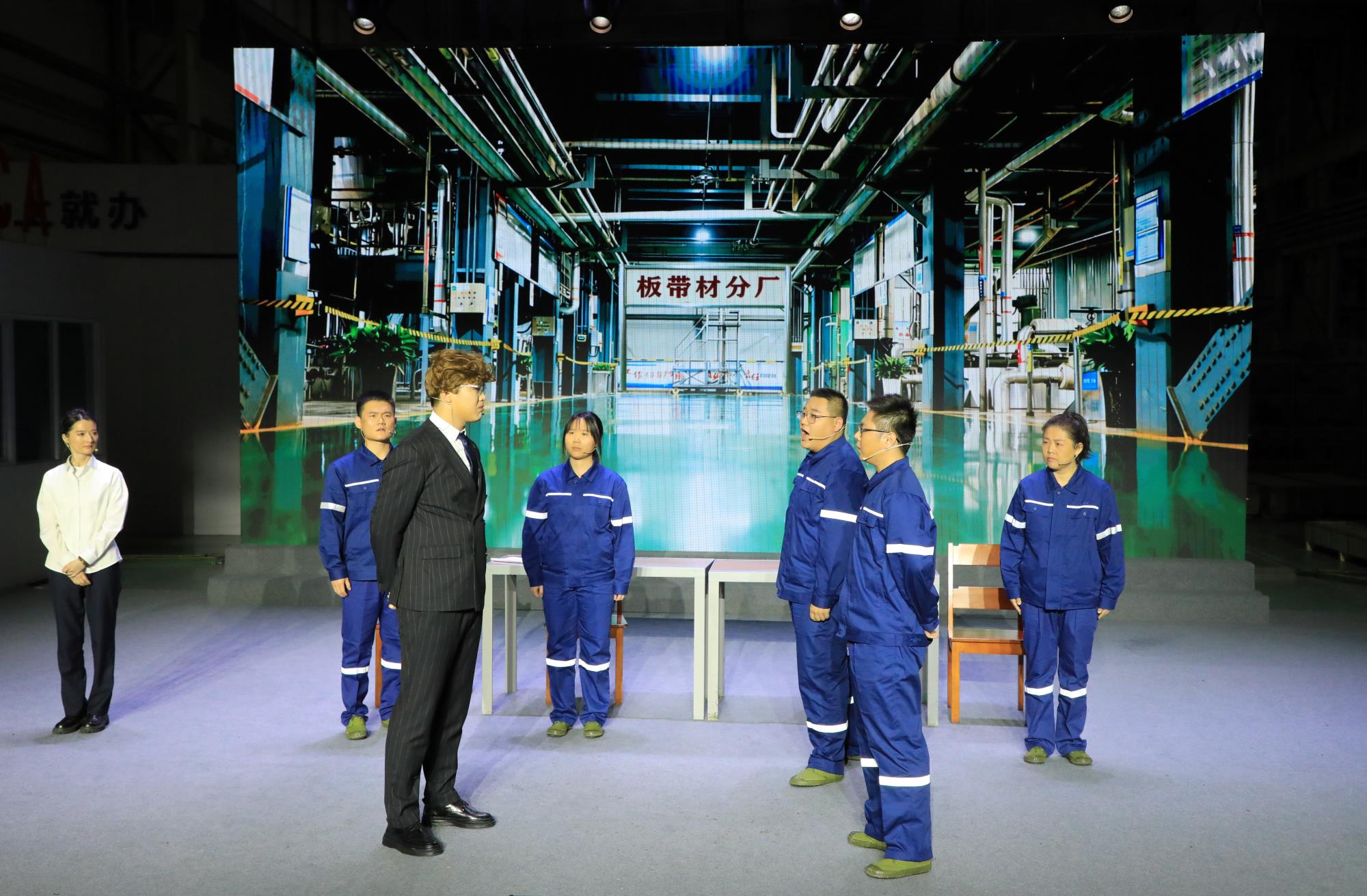 活动中,原创话剧《一脉金钼》以艺术化手法,生动再现了企业自1958年创立以来68载风雨兼程的奋斗画卷。剧目选取三个标志性历史片段:在“栗峪水源大会战”中,讲述了第一代创业者们在尹鸿初老矿长的带领下人拉肩扛、扎根山野,以人力攻克自然险阻的创业艰辛;“金堆三件宝”——雨衣、雨靴、破棉袄背后象征着金钼人艰苦奋斗、爱岗奉献的精神传承。当老父亲颤抖着将破旧的棉袄传递到儿子手中,一递一接间,全场肃然;面对高端材料“卡脖子”困境,科研与生产团队聚力攻克“钼靶材”关键技术、实现国产化替代。在“钼靶材”研发成功的瞬间,大屏上“金钼小龙”将成功的消息传递给全场观众,演员们相拥而泣,台下掌声经久不息。一幕幕场景穿越时空,将几代产业工人在艰苦环境中的坚守、在时代变迁中的抉择、在创新征程中的勇气,展现得淋漓尽致。让在场观众仿佛置身于那段激情燃烧的岁月,深刻感受到一代代产业工人矢志报国的赤子之心。