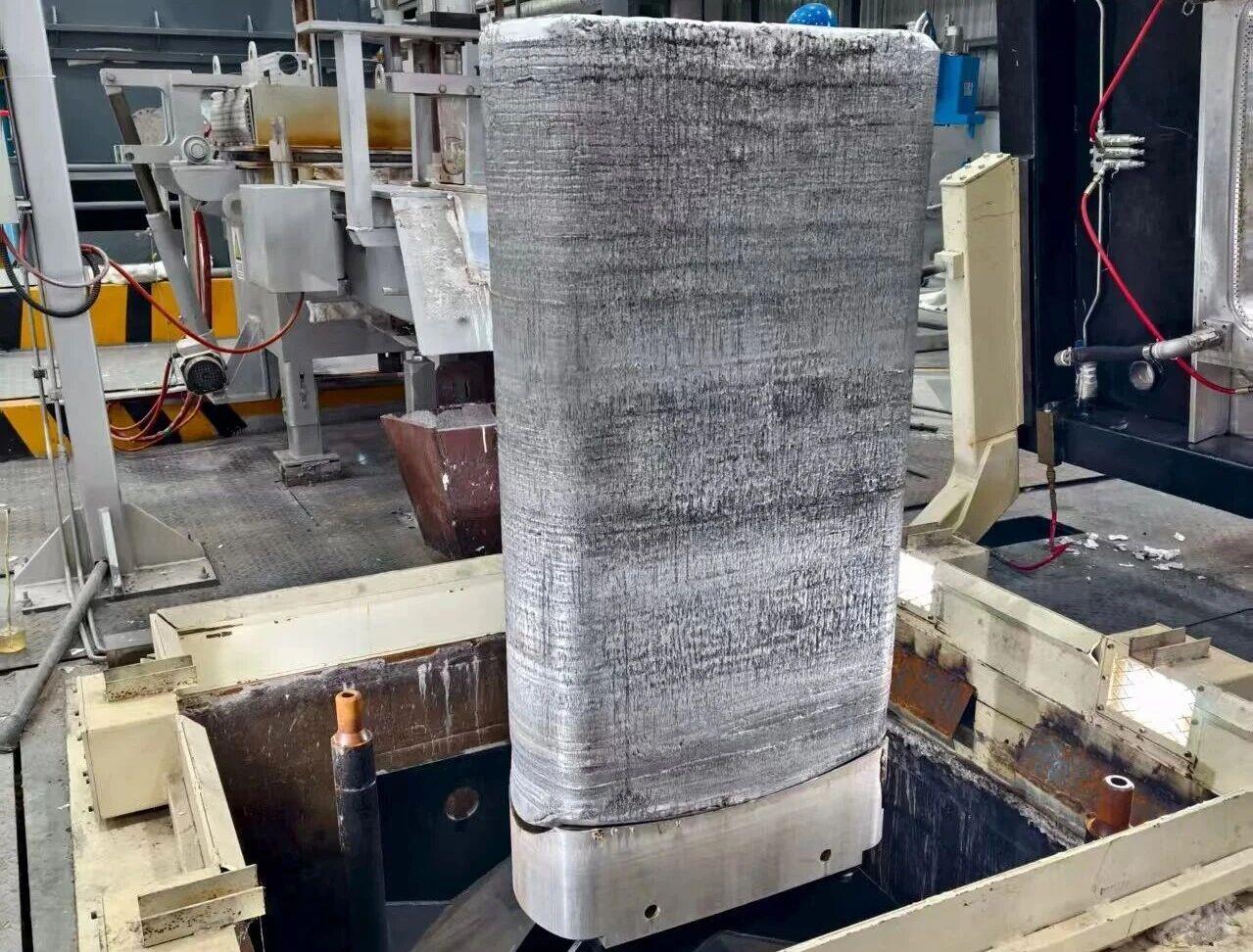近日,在榆林新材料集团铜川董家河循环经济产业园中试车间,一块重达1吨的亮银色铝合金扁锭顺利下线,填补了该公司高品质大规格7系铝合金半连续铸造的技术空白,为后续铝深加工业务拓展打下了坚实基础。