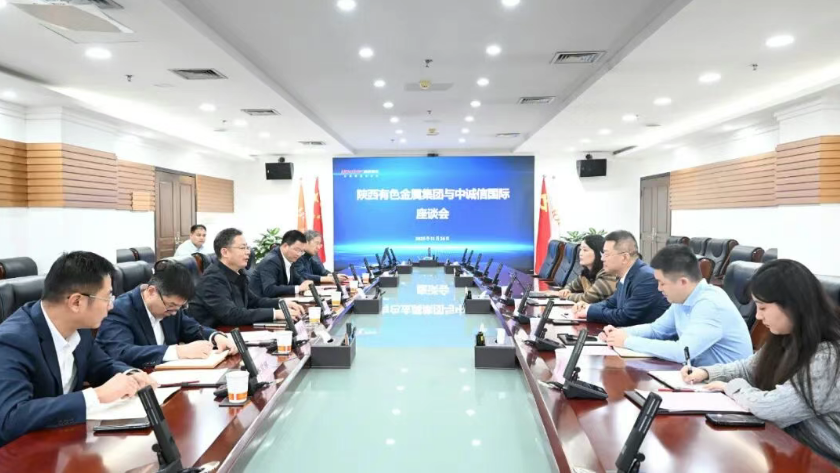 11月26日,陕西有色金属集团党委书记、董事长吴群英在集团总部与中诚信国际总裁岳志岗一行围绕深化多领域合作、共促企业高质量发展座谈交流。