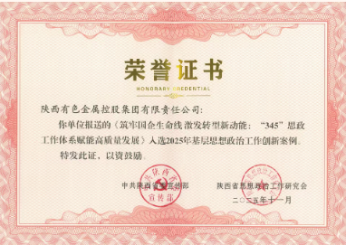 会议现场表彰了7家入选中国政研会“十佳”案例、创新案例、优秀研究成果的单位和6家入选我省基层思想政治工作创新案例的单位。陕西有色金属集团《筑牢国企生命线 激发转型新动能:“345”思政工作体系赋能高质量发展》案例入选陕西省2025年基层思想政治工作创新案例,是现场接受表彰的2家省属国有企业之一。