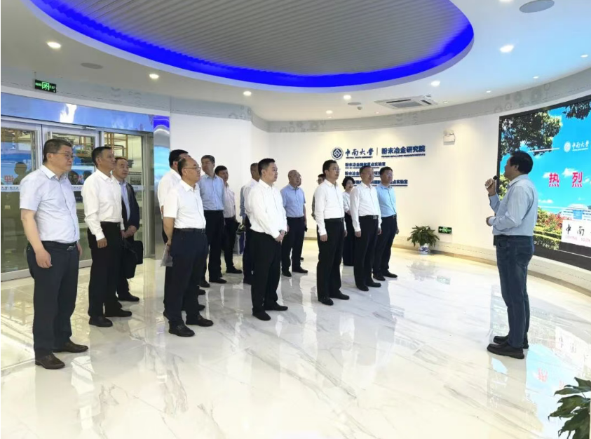 座谈会前,中南大学粉末冶金研究院党委书记王德志教授陪同吴群英一行参观考察了粉末冶金研究院粉末冶金国家重点实验室。