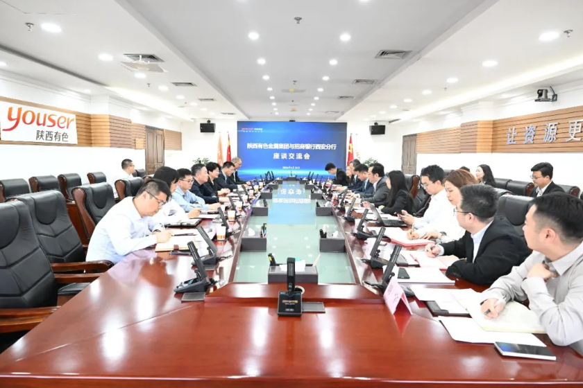 4月16日,陕西有色金属集团党委副书记、董事、总经理莫勇在集团总部与招商银行西安分行党委书记、行长孟俊清一行围绕深化全方位银企合作、推动互利共赢座谈交流。招商银行西安分行理财党委委员、副总裁董倩,党委委员、副行长韩骁参加座谈。