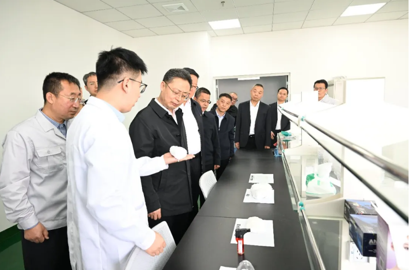 吴群英一行实地察看了科创园区先进金属基复合材料中试线、复合材料中试线、碳硅新材料院士工作站、氧化物纤维实验室、联创中心(一站八中心实验室)等中试生产线,详细了解了项目厂房建设、施工改造、设备安装、科研试验进展、职工食宿保障等情况,并结合现场实际对关键环节和重点问题提出指导意见。