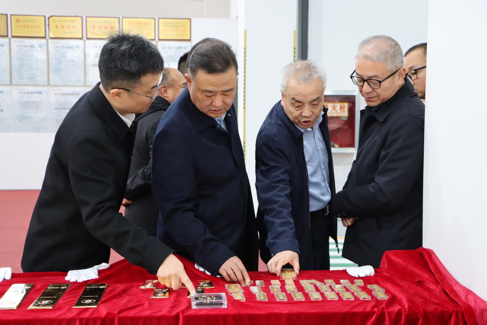 外部董事一行首先走进西安秦金公司高质量压延生产线过渡厂房,深入黄金、白银成品区、抛光区和丝轧扁区等关键生产区域,细致观摩黄金压延、冲压及白银铸造、直进式轧制、拉丝、退火等全流程生产工艺,并听取公司产业布局、发展战略、工艺流程优化、安全生产管理等方面情况汇报。