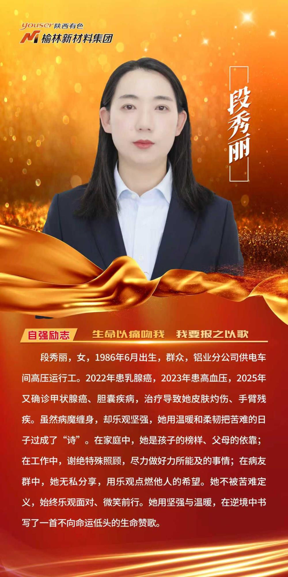发布仪式上,榆林新材料集团合金分公司铸造车间铸造工曹孝孝被授予“助人为乐好人”;铝业分公司净化供料车间检修电工吴俊龙被授予“敬业奉献好人”;铝业分公司电解三车间多功能天车工雍乐被授予“孝老爱亲好人”;铝业分公司供电车间高压运行工段秀丽被授予“自强励志好人”。